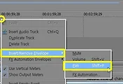 오디오 클립이 있는 타임라인 빈공간에서 우클릭 메뉴 > Insert/Remove Envelope > Volume을 클릭(단축키 Shift+V)를하면, Volume Line이 나타나게 됩니다.